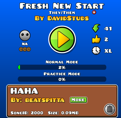 In other words, I have released a new level called Fresh New Start on a new account!!!!!!1 Waow!!!